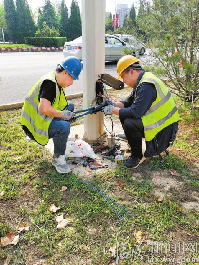 临汾新闻网讯 连日来,市城市管理局城市照明维护中心持续开展路灯大检查,对辖区主次干道、背街小巷及城市广场公园等公共场所路灯设施安全运行情况进行“把脉问诊”,发现隐患立即处理,确保路灯设施完好率和亮灯率。图为工作人员正在检修。