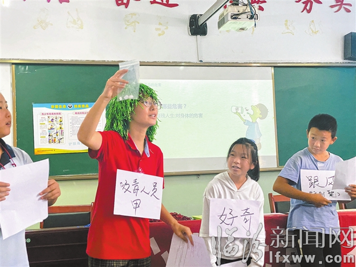 临汾新闻网讯 9月14日,尧都区公安局禁毒民警联合尧都区社区戒毒社区康复服务中心社工,在屯里镇中学开展禁毒宣传。禁毒民警以简洁生动的语言讲述真实的案例,让学生认识到毒品的严重社会危害性。图为学生们积极参与到情景剧表演中。