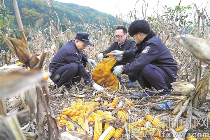 临汾新闻网讯 救灾减灾,助农秋收。尧都区公安局深化“我为群众办实事”实践活动,近日组织30余名民警深入对口帮扶的土门镇西头村,为4户受灾村民抢收秋粮。民警们掰玉米、装袋子,把一车车玉米运回村民家中。图为劳动现场。