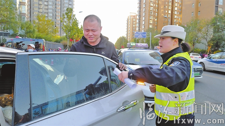 有人逆行,崔琼慧立刻劝返;有人不戴头盔,她耐心宣传教育;有人随意停放车辆,她予以警告并令其立即驶离;有人闯红灯,她一个箭步上去,及时阻止……沿着解放西路、鼓楼西大街、中大街、滨河东路一路下来,同样的话语,她每天不知道要重复多少遍。