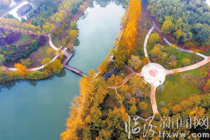 临汾新闻网讯 初冬时节,汾河公园内还是满眼的“秋色”,各色树木酝酿出最浓烈的色彩,在蓝天碧水的映衬下,五彩斑斓、如诗如画,吸引众多市民前来游玩。