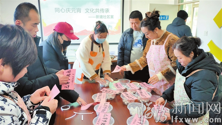 近日,我市部分社区纷纷开展元宵节主题活动,营造了喜庆与热闹的节日氛围。图为2月10日,霍州市开元街道新建社区居民正围在一起分装汤圆。