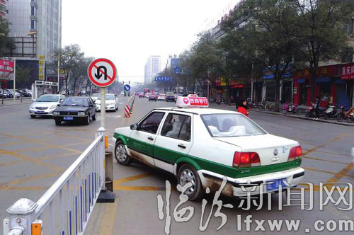 道路交通标志是显示交通法规及道路信息的图形符号,它可使交通法规得到形象、具体、简明的表述,同时还表达了难以用文字描述的内容,用以管理交通、指示行车方向以保证道路畅通与行车安全的设施。记者在鼓楼北大街一处禁止掉头的标志处看到,司机明知此处不可以掉头,依然转动方向盘掉转车头,从此通过。