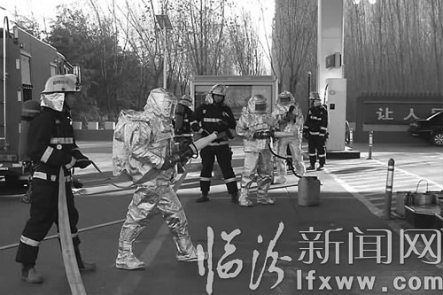 临汾新闻网讯(记者 王隰斌 卢凯)1月8日下午3时40分,武警消防临汾支队在锣鼓大桥西口加油站采取不打招呼、不设预案的方式,调集特勤中队和尧都中队出动消防车辆5台、40余消防官兵举行了易燃易爆场所无预案消防演习。此次演练以加强官兵火灾紧急处置能力为着力点,以实战演练为突破口,在演练过程中以预设险情为源头带动演练节奏。