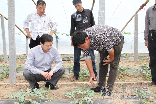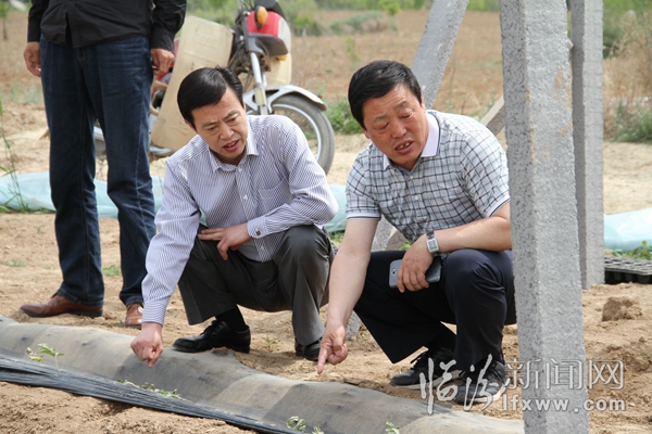 图为市国税局局长王子贞深入南卫村查看大棚受损情况