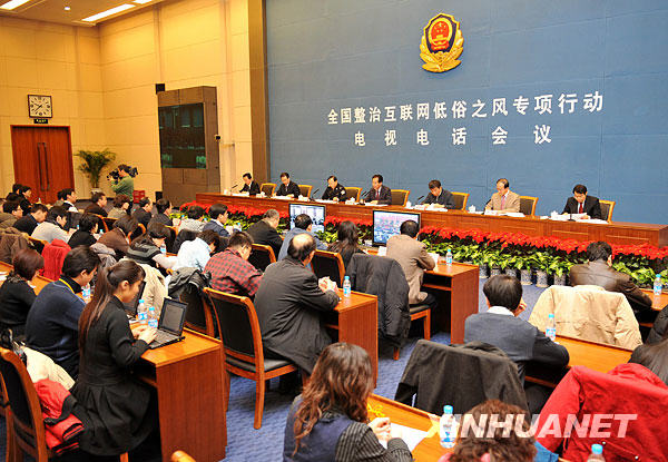 1月5日,国务院新闻办等七部委召开电视电话会议,部署在全国开展整治互联网低俗之风专项行动。国务院新闻办副主任蔡名照主持会议并讲话。新华社记者
