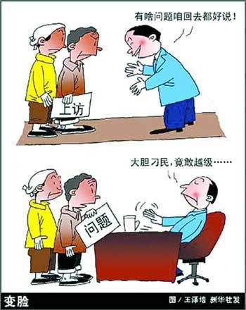 “接访”与“截访”截然不同。“接访”,即接待上访的人;“截访”,是追堵越级上访的人。 来源:新华网