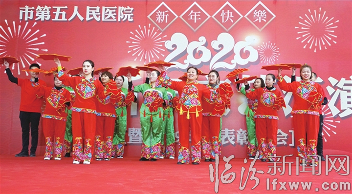 临汾新闻网讯 市第五人民医院医务人员欢乐迎新春。 记者 摄