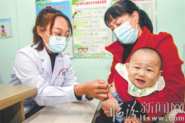 临汾新闻网讯 秋冬季节是流感高发期,接种流感疫苗是预防流感最有效的手段之一。近日,中国疾控中心发布最新版《中国流感疫苗预防接种技术指南(2020-2021)》,更新了本年度三价和四价流感疫苗组份以及对流感疫苗的接种建议,以抵御今年秋冬季新冠肺炎与流感等呼吸道传染病叠加流行的风险。图为11月3日尧都区妇幼保健院医护人员为市民接种流感疫苗。