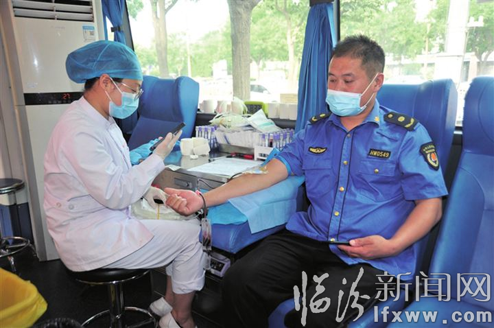 这家公司已连续多年组织开展无偿献血志愿服务活动,每次都有上百名员工积极响应,此时已有近20名志愿者闻讯赶来采血点。苗军军和护士赵华莉身兼数职,先是维持现场秩序,接着依次为志愿者核验身份、填表登记。