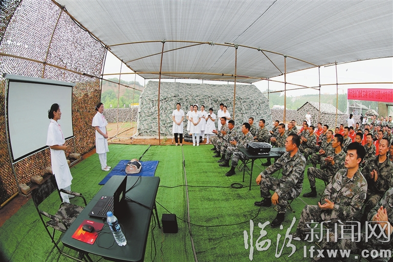临汾新闻网讯 在“八一”建军节之际,临汾市中心医院门诊部医护人员针对夏季易发的训练伤等意外情况,走进军分区训练场,为子弟兵送去“夏日医疗大礼包”,并现场指导官兵们实施心肺复苏急救法和海姆立克急救法。