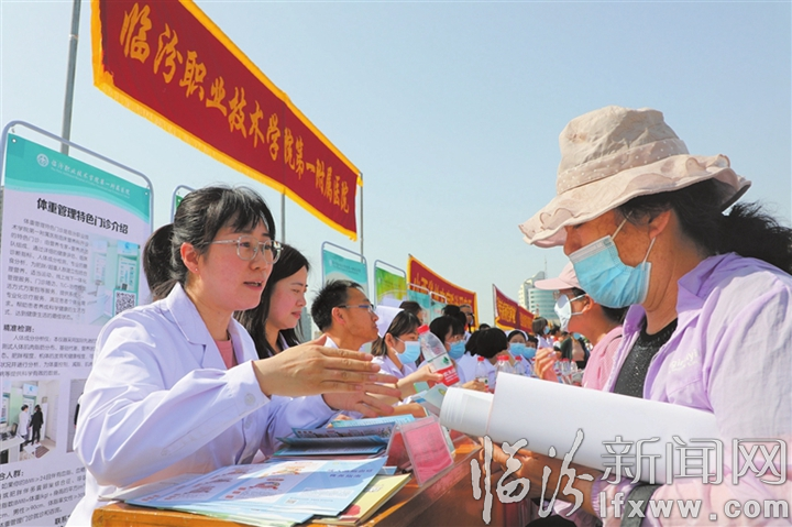 临汾新闻网讯 5月15日是全国第30个“防治碘缺乏病日”,我市于当天上午开展了相关宣传活动,营造全民参与碘缺乏病防治工作的良好氛围。图为临汾职业技术学院第一附属医院的工作人员在市区平阳广场为市民讲解相关知识。