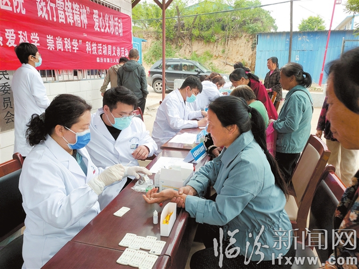 临汾新闻网讯 5月26日,市第三人民医院的医务人员来到大宁县太古镇坦达村,开展“践行雷锋精神”爱心义诊活动,受到当地村民欢迎。