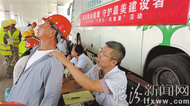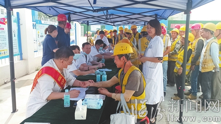 临汾新闻网讯 7月9日,在市卫健委组织开展的“关注职业健康、守护最美建设者”主题义诊活动中,市中医医院派出3组中医专家团队分赴我市3个重点工程项目部,为一线工友免费提供健康服务,并送出具有中医特色的防暑清凉礼包。