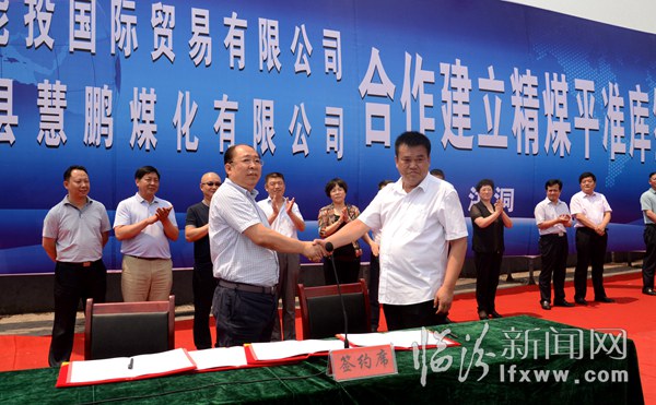 临汾新闻网讯(记者 王伟)6月17日,我市首座50万吨精煤平准库签约仪式在洪洞县龙马乡举行。自3月14日山西能投国际贸易有限公司与洪洞县慧鹏煤化有限公司双方达成合作意向后,短短3个月时间,该项目终成现实。这也标志着国有企业和民营企业合作发展混合所有制经济在槐乡大地开花结果。
