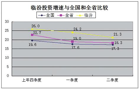 今年上半年,值得的欣慰是,2010年以来临汾投资增速始终高于全国和全省。从前三个季度看,临汾固定资产投资与全国和全省走势一致,均呈回落态势,但好的一点是临汾投资增速均高于全省和全国平均水平。前三季度,临汾固定资产投资增速比全省分别高3.3、5.2和3个百分点,比全国分别高6.4、6.6和4个百分点。从上半年全省11个市排位情况看,临汾增速位居全省第六,居中游水平。