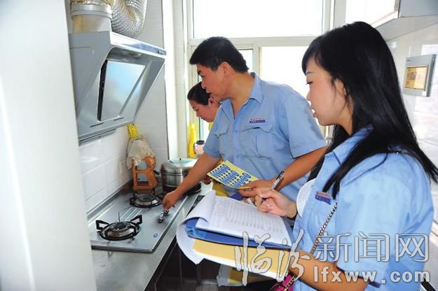 记者跟随抄表员畅金秀、安检员王强来到位于该小区4号楼的王师傅家里。“首先,我们要核对用户信息、检查燃气计量表是否计量正常,然后进行燃气表抄收,使用POS机进行气种的转换……”畅金秀边工作边介绍着详细流程。在王师傅签字确认之后,她将“已抄”的标识粘贴在燃气计量表上。“王师傅家使用的是嵌入式煤气灶,由于天然气和煤气压力不同,这个灶具需要改造后方可使用。”王强和王师傅沟通后,在煤气灶下方粘贴了“未改造严禁使用”的标志。随后,他又检查了王师傅家是否安装有煤气热水器、壁挂炉等装置。“这些工作人员很辛苦,两三个人要跑几幢楼一百五六十户人家,抄表、安检,每家每户最少都得去两三次,碰上一些家户没人在,就得五六趟的跑,这么热天气,真是不容易。”王师傅由衷地说。