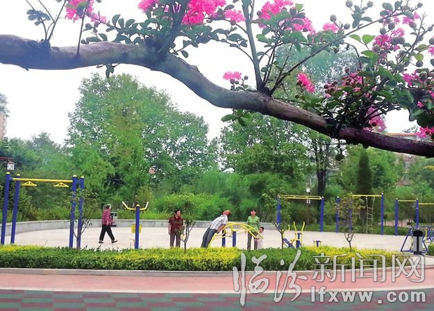 侯马市程王公园内,市民们正在健身、休闲。初秋的公园紫薇花竞相绽放,与各种绿色植物相互映衬,好似一幅美丽的图画