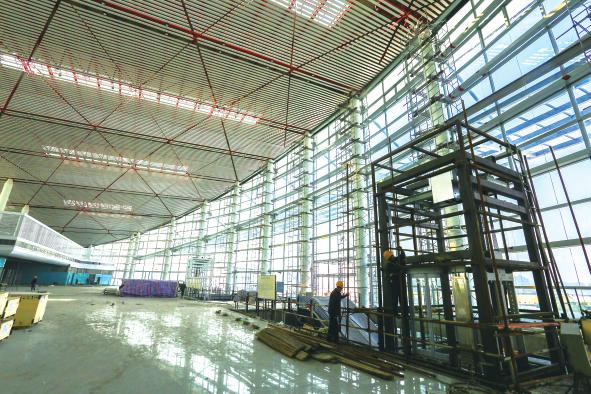 在机声轰鸣中,大型挖掘机正在清理土石;在井然有序中,监管人员对刚刚入场的原材料严格验收;在一丝不苟中,施工人员正将管线敷设到位;在相互配合下,一根根龙骨正在高空吊装;在粉尘密布下,工人师傅将切割好的地砖轻轻铺下……在航站楼的各个区域,在站前广场的多条道路,处处都有施工人员的身影,处处都是一幅紧张施工的场景。这是10月27日,记者走进临汾民航机场项目建设现场看到的一幕。