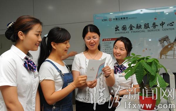 临汾新闻网讯 6月23日,在中国工商银行临汾银苑支行,工作人员在客户介绍外币兑换业务。当日,该支行出国金融服务中心正式对外营业,为广大市民提供外币储蓄、个人结售汇、外币兑换、出国咨询以及留学贷款等10余项金融服务,让广大市民“足不出中心”就可以享受专业的一站式贴心服务。 记者 闫锐鹏 摄