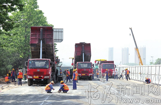 据了解,此次主桥桥面摊铺长度为932米,宽度为10米至15米,其中桥面两端摊铺3层沥青,桥面中段摊铺2层沥青,预计使用沥青混合料3237吨。