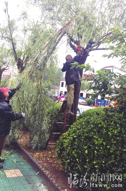 临汾新闻网讯 6月21日下午,我市出现强对流天气,遭受到大风暴雨及短时间冰雹袭击。受此影响,市区内多处树木被大风刮断。城市绿化队未等大雨停止时,就出动十余台大型机械,组织百余名工作人员上路清理倒地的树木,保障道路交通安全。 记者苏亚兵摄