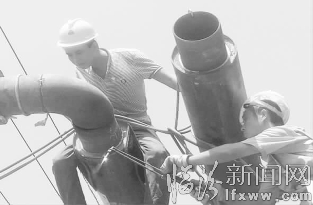 8月4日10时,我市气温达到35℃。在北孝社区附近的施工现场,许多工人在离地面三四米的高架上对供暖管道进行焊接。焊工张勇杰说,刚开始爬高作业还有点害怕,这几个月下来,每天都要爬上五六次高架,已经习惯了。