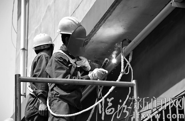 临汾新闻网讯 市区“煤改气”工程启动以来,临汾燃气公司面对施工区域内环境复杂、点多面广的不利局面, 重点加强作业现场管理和人员的安全管理, 实现了开工以来零事故、 少扰民的目标。 图为燃气施工人员正在尧庙镇大韩村进行燃气架空管的焊接作业。