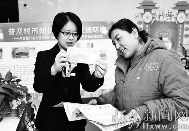 临汾新闻网讯 近日,华夏银行举办“普及钱币知识,净化流通环境”为主题的金融知识集中宣传活动。在活动现场,银行工作人员教市民辨别假币,并向他们宣传制贩假币的危害性,提高防范意识和识别能力。
