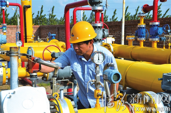 临汾新闻网讯 全省旅发大会到来前夕,临汾燃气公司组织技术人员对市区燃气设施进行了全面检查。图为九月十二日,技术人员正在对门站供气设施进行精细检查,确保设备的安全稳定运行。