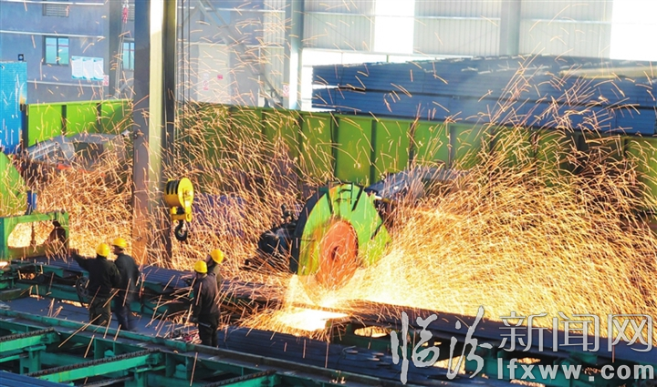 图为日前工人师傅正在按照规格对H型钢进行切割。
