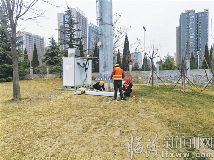 图为日前中国移动临汾分公司工作人员在调试5G基站。记者 赵玉峰 摄