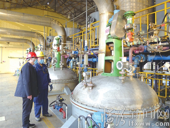 临汾新闻网讯 二月十三日,山西临汾染化(集团)公司工作人员正在二硝车间内检查硝化锅运行情况。自新冠肺炎疫情阻击战打响以来,该公司早安排、早部署,在全力以赴抓好疫情防控的同时,保障了安全生产正常进行。