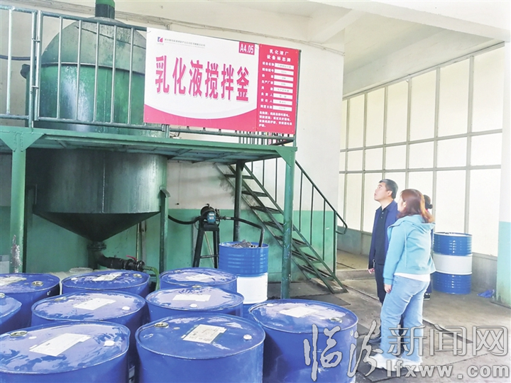 图②为工作人员在李雅庄多经公司乳化液厂检查。