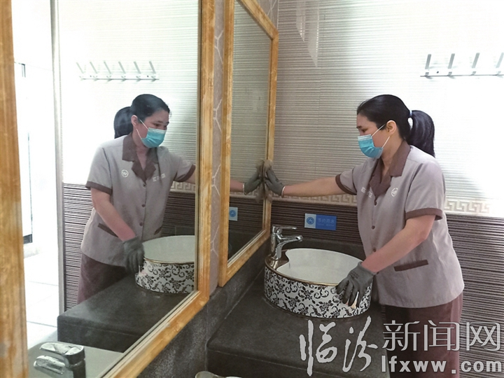 临汾新闻网讯 地面光亮整洁、没有一丝异味,就连洗手池和镜子上也被擦拭的没有一丁点儿水渍……6月12日,记者在位于市区鼓楼广场的77号公厕看到,管理员杨美云正和同事张姝贤对公厕的卫生环境进行着日常的打扫和擦拭。
