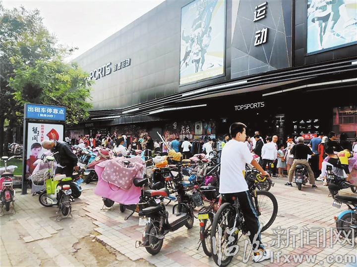 “受疫情影响,感觉好久没有逛过街了,也失去了很多逛街和消费带来的快乐。今天路过贡院街,看到好多商家在搞促销活动,人多货丰,一下子又萌发了那种久别重逢的购物快感。”9月12日17时许,市民关女士和爱人途经市区贡院街滔博运动城时,看到门前停放了很多车辆、聚集了很多人、摆出了很多货架,也不自觉地停下电动车,走进卖场。