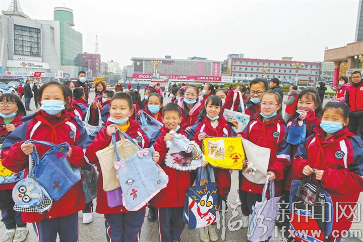 临汾新闻网讯 11月28日上午,尧都区解放路第三学校五年级的孩子走上街头,将自己用废旧衣物制作的环保购物袋免费发给市民,倡导大家购物时能用环保布袋,减少使用塑料制品,为建设美丽临汾、绿色临汾出一份力。