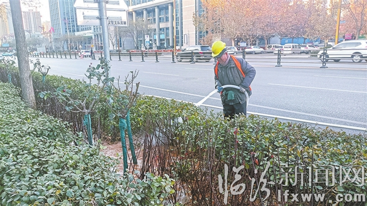 临汾新闻网讯 市区向阳西路提质改造完成后,靓丽的街景成为市区一道独特的风景线。然而,美景的背后是默默付出的工作人员们。12月14日,记者在向阳西路看到,一名绿化工人正冒着严寒,手拿水管为街边绿植浇水,工人被冻红的鼻头分外惹眼,工作不易,打造美景更是不易,希望广大市民能够珍惜工人的劳动成果,共同打造一个美丽的向阳西路。
