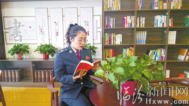 图为洪洞县税务局干部张欣在诵读红色家书。王泽昊 摄