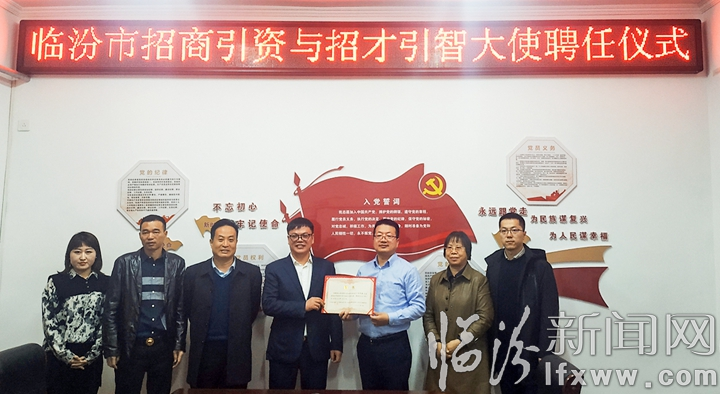 临汾新闻网讯 (记者 柴亚虹)3月23日,山西省浙江企业联合会会长彭衍吾正式受聘为临汾市招商引资与招才引智大使。