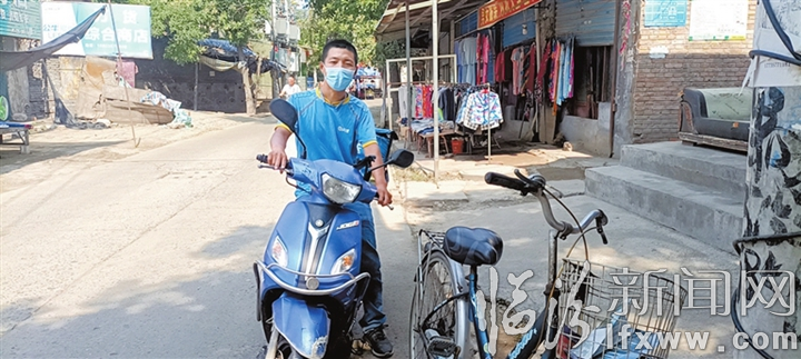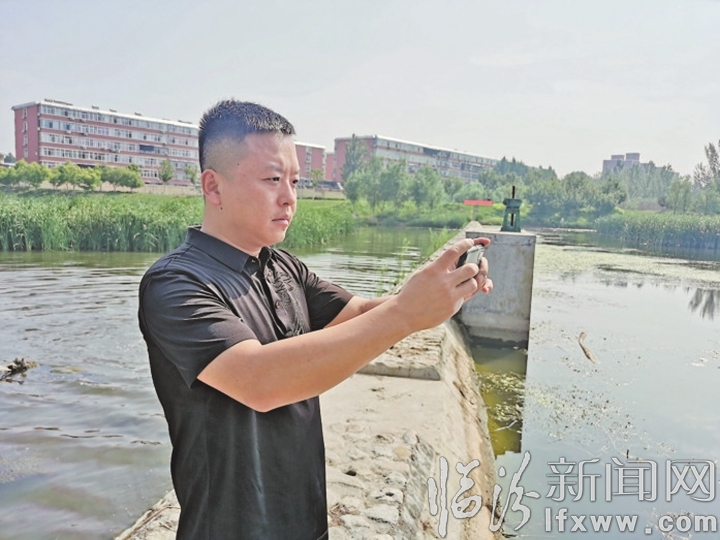 他是滨河办事处高河店社区居委会副主任赵磊,正在进行每天一次的防汛巡查。