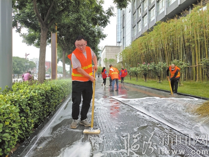 夏天的路面上的污渍多,经常有宠物尿迹、虫卵等污染物。点多面广的特点无形中增加了环卫工作的难度。