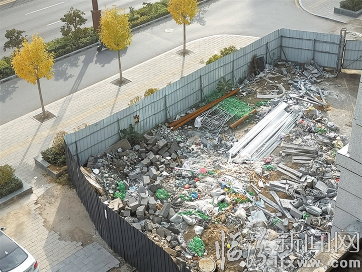 据吉祥花园小区居民介绍,该装修工地搭建围挡已存在好几个月的时间了,白天大门紧锁,很少看见工人进出。但是,从小区住宅楼上望去,围挡内的垃圾不断增加,应该是有工人在施工。