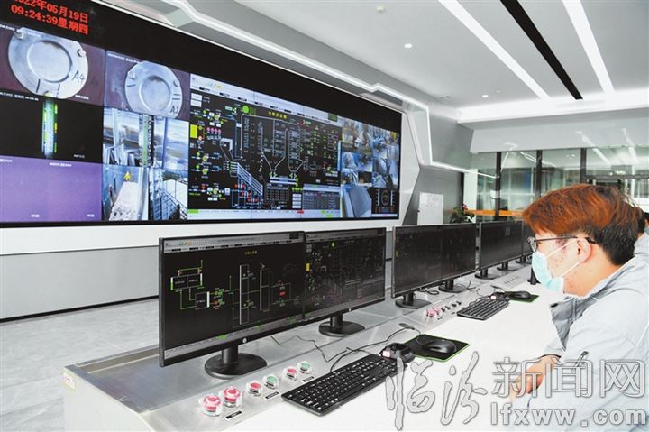 临汾新闻网讯 临汾市环境产业园项目总投资6.83亿元,是我市实施的一项重要基础设施工程和民生工程。该项目投入使用后,总规模可日处理生活垃圾1200吨,每年可将生活垃圾转化为1亿度电、6万吨环保建材、6千吨生物质柴油。同时还配套建设了污水处理厂。目前,该项目一期工程已投入运行。图为工作人员正在监测设备的运行情况。 记者 魏华 摄