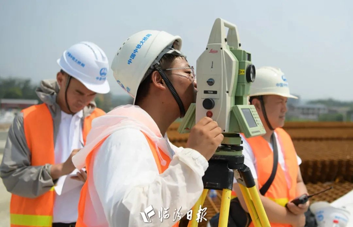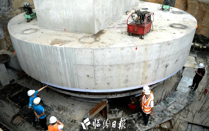 据项目总工程师文杰介绍,本次转体施工难度较大,主桥转体钢箱梁为异形钢箱梁,左幅转体重量约3200吨、右幅转体重量约3600吨的桥梁,采用双幅不平衡转体,跨越南同蒲铁路上、下行线与临汾站牵出线,左右两幅为顺时针同步转动,左幅转体角度为97.82°,右幅转体角度为96.47°。为保证转体过程中结构稳定,项目部在转体前分别对左右两幅梁体进行了3次称配重及2次调整,获取了偏心距、摩阻系数等重要参数,有效控制了施工风险,保证铁路营运线安全的同时,桥梁安全、正点地在120分钟内完成毫米级“转身”。