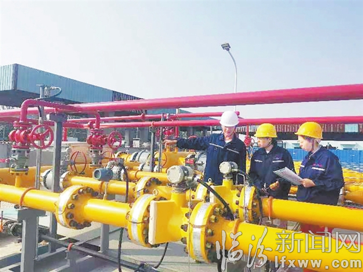 工作人员在检查调压设施运行情况