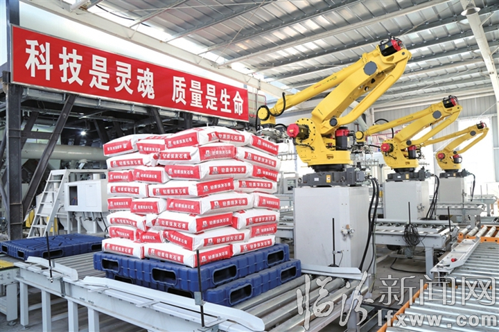 临汾新闻网讯 山西大地华基建材科技有限公司是一家以建筑垃圾和固废资源化利用为龙头,集研发、生产绿色混凝土、干混砂浆、瓷砖黏合剂、轻质抹灰石膏砂浆、新型地面透水砖为一体的高新技术企业。该企业打造的石膏砂浆生产线工艺先进、节能降耗,自动化程度高、生产效率高,其产品具有环保、经济的特点,是固废循环利用的绿色建材。图为该企业全自动的轻质抹灰石膏砂浆生产线。