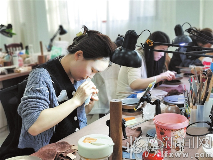 临汾新闻网讯 乡宁县华廷陶瓷文化有限公司是集紫砂工艺品、陶瓷酒瓶、紫砂建筑材料生产为一体的综合性企业,创立了国内最大的单体紫砂产品生产车间。图为紫砂技师正在手工创作紫砂茶具产品。