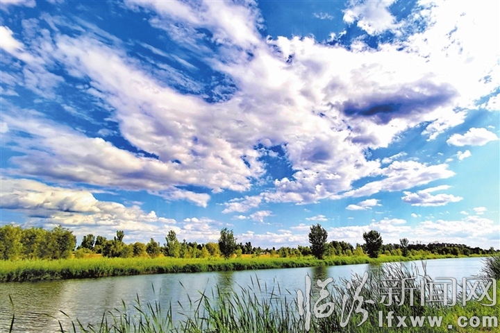 临汾新闻网讯 行走在汾河公园,湛蓝的天空、翠绿的树叶、清澈的河水……触目皆是美景。近年来,随着生态环境的不断改善,汾河流域水清岸绿、河畅景美的水生态环境变身城市生态“会客厅”,一幅秀美生态画卷徐徐铺展。图为近日拍摄的汾河一角。