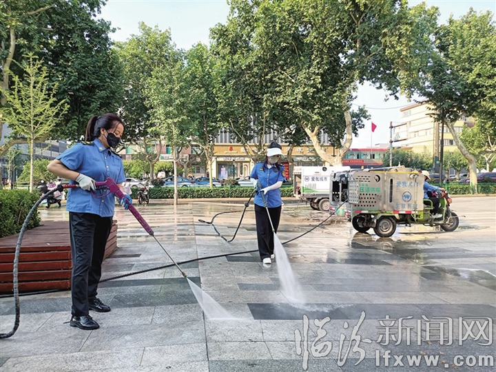 临汾新闻网讯 为有效防治道路扬尘污染,近段时间以来,市城管局不断加大市区大街小巷清扫力度,优化调整机扫、洗扫、洒水、冲洗等作业方式,提高路面整洁度。图为该局清污管理队工作人员正在市区解放路冲洗路面。